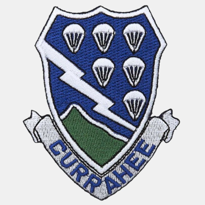 Reproduction of the insignia of the 506th Parachute Infantry Regiment, whose motto “Currahee” is inspired by the name of the mountain located near Camp Toccoa.