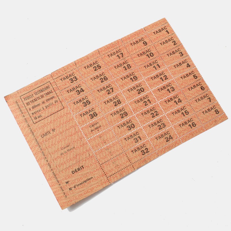 Complete sheet of tobacco ration tickets