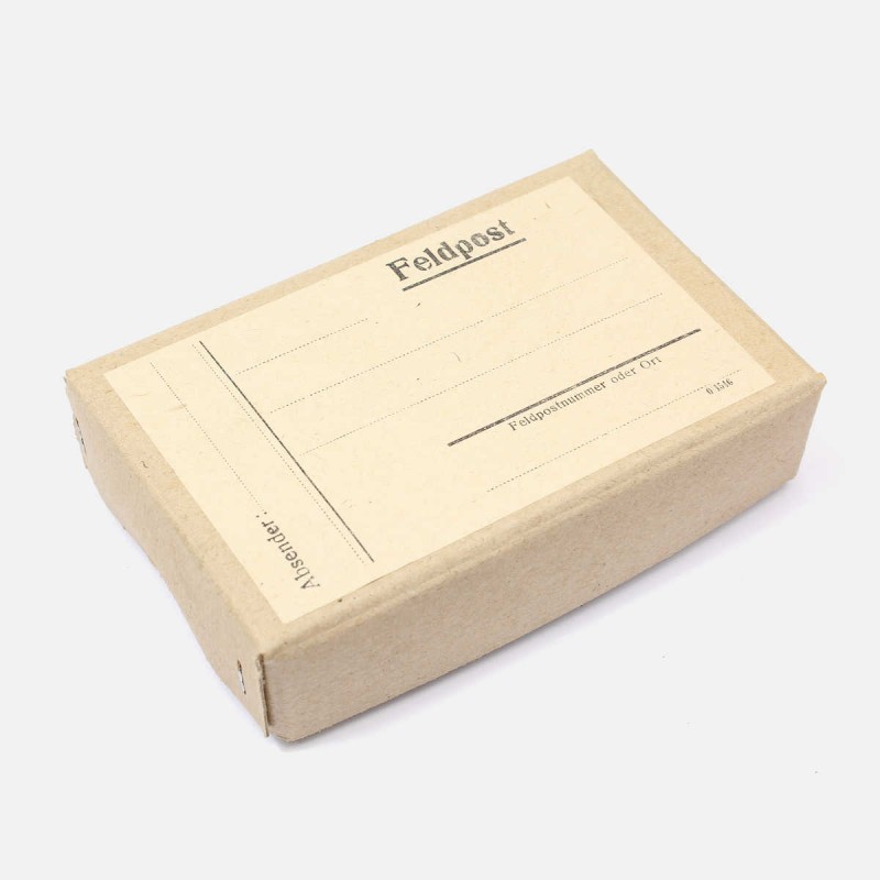 This little cardboard box is original. It allows German soldiers to ship mail and small items during the Second World War.