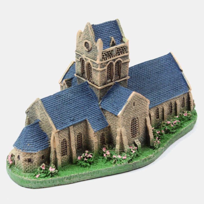 This church of Ste-Mère-Eglise is a resin ornament to place in a bookcase or on a desk. It measures 12x7.7cm.