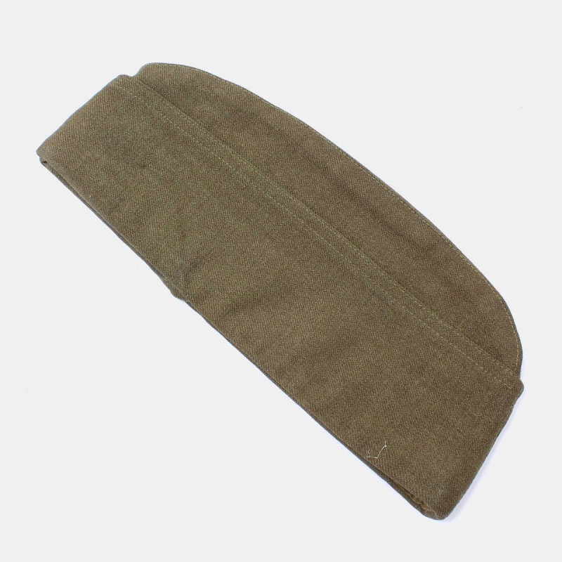 This cap is original. It has no piping. This type of headgear was issued to US Army soldiers during World War II. The label is missing. This cap is size 56.