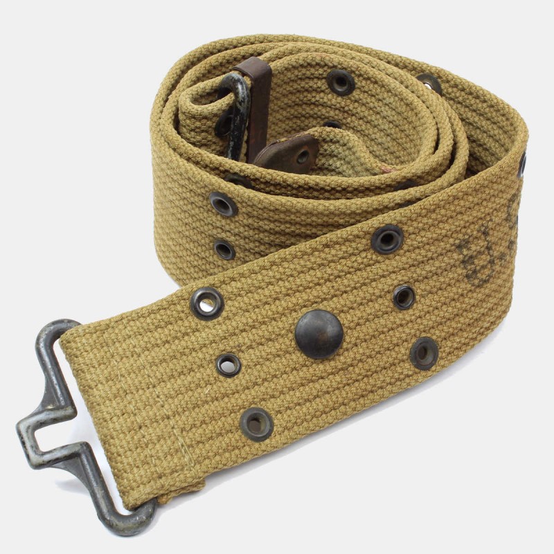 This M36 belt is original, supplied during World War II to US Army soldiers to attach all their equipment. The eyelets can accommodate all types of accessories (shovel, musette bag, backpack, sling, magazine pouch, etc.). This belt shows signs of wear and dates from 1942.