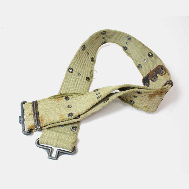 This original M36 belt was supplied during the Second World War to soldiers in the American army, enabling them to carry all their equipment. The eyelets can accommodate all types of accessory (shovel, musette bag, pack, magazine holder, etc.). This belt is in bad conditions.