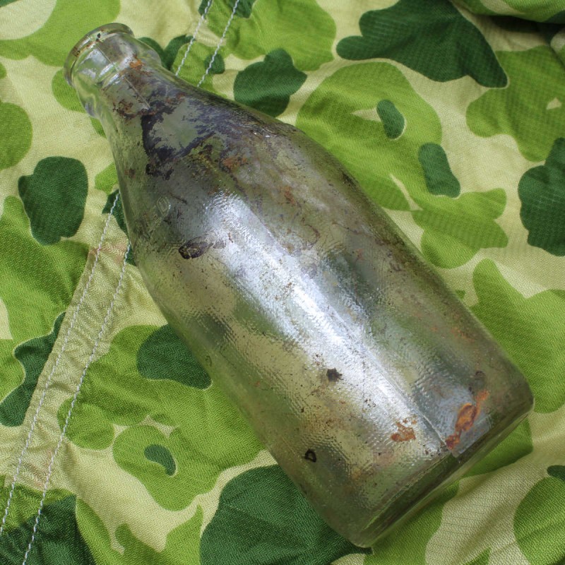 This bottle is original and was found several years ago in Normandy. This is the white glass model produced for the US Army and containing beer (ABC, Ruppert, Eastside, etc ...). It bears the markings of its manufacturer as well as NO DEPOSIT NO RETURN NOT TO BE REFILLED.