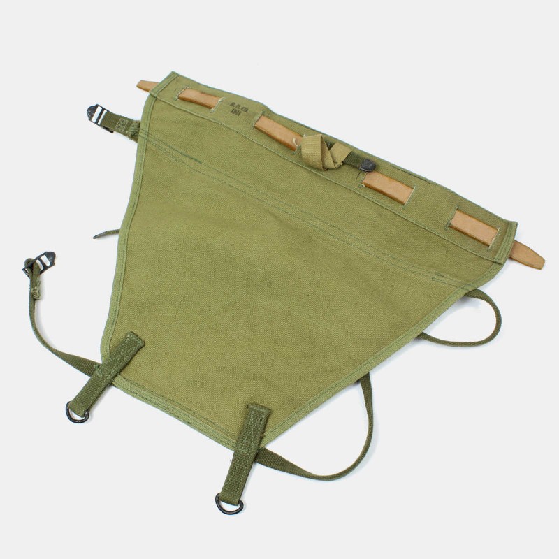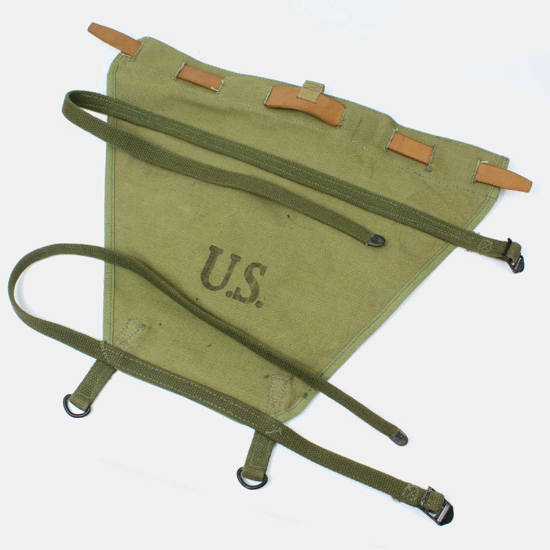This canvas carrier pack fits on the Havresac M-28 of the American army. It is actually an extension allowing the carrying of the fabric, cover etc ... The leather strap is present. This copy is dated 1944 and in very good condition.