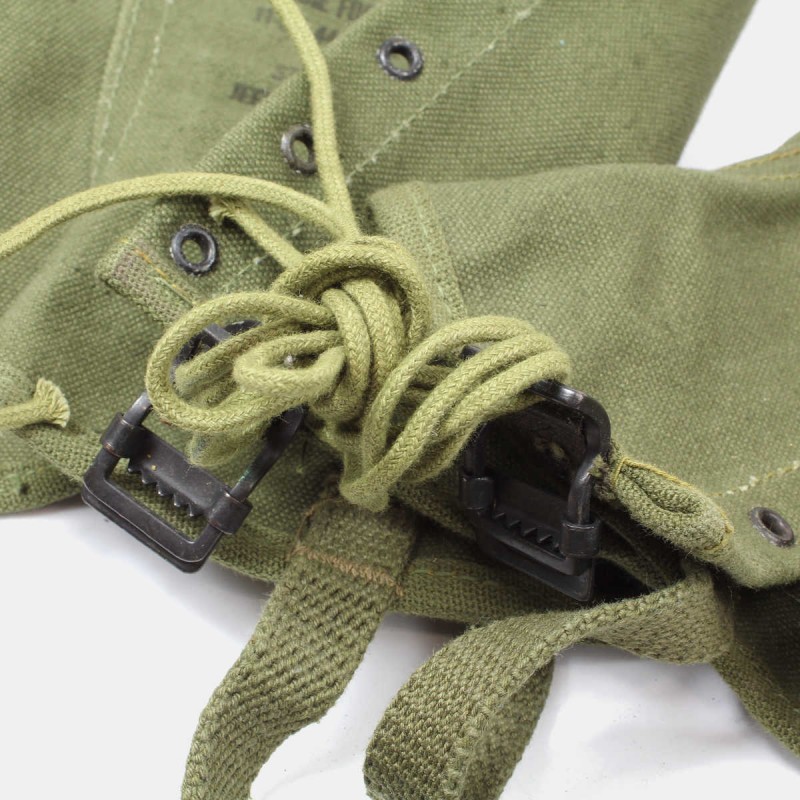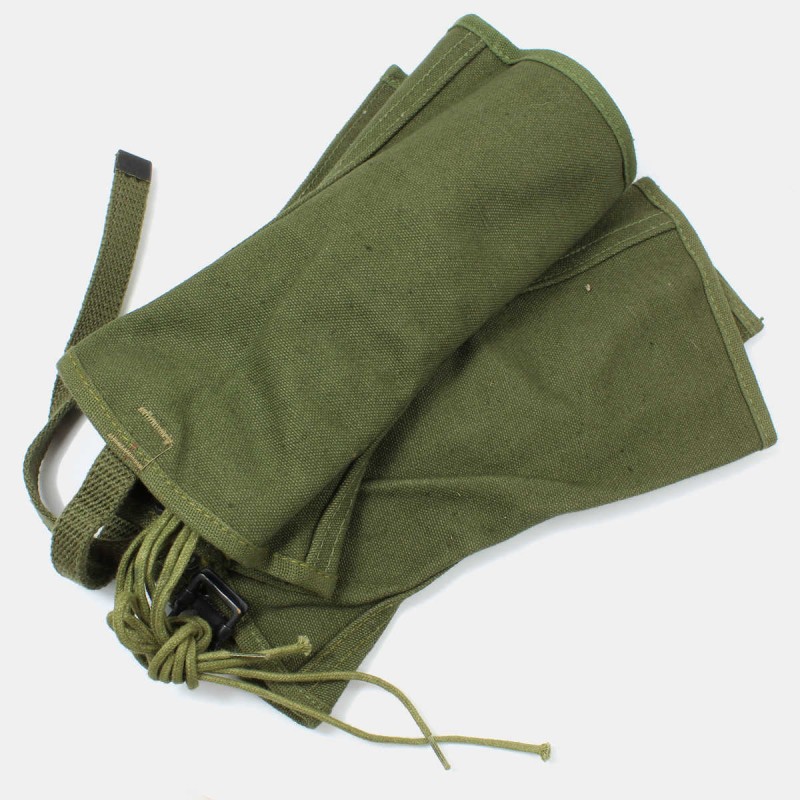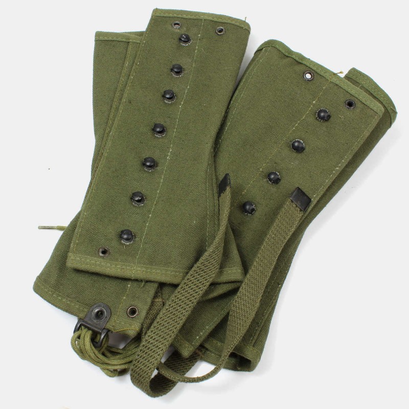 These gaiters are original, size 1R. They are in good overall condition and still bear markings. Once laced up, they prevent damage to the bottoms of trousers and, more importantly, prevent water from seeping into shoes and under the uniform. Dated 1944.
