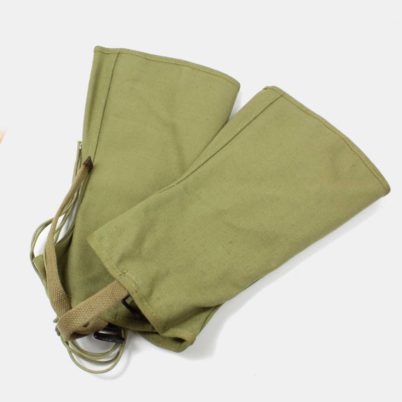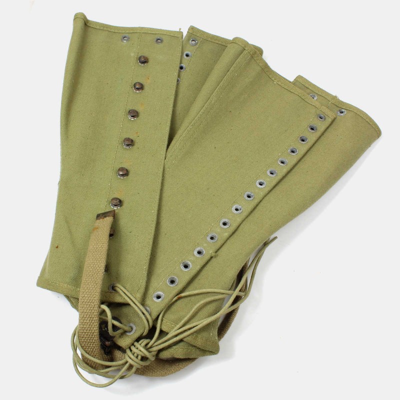 These gaiters are original, size 3R and dated 1942. When laced up, they prevent damage to trouser bottoms and, above all, prevent water from seeping into shoes and under uniforms. These gaiters are in very good overall condition.