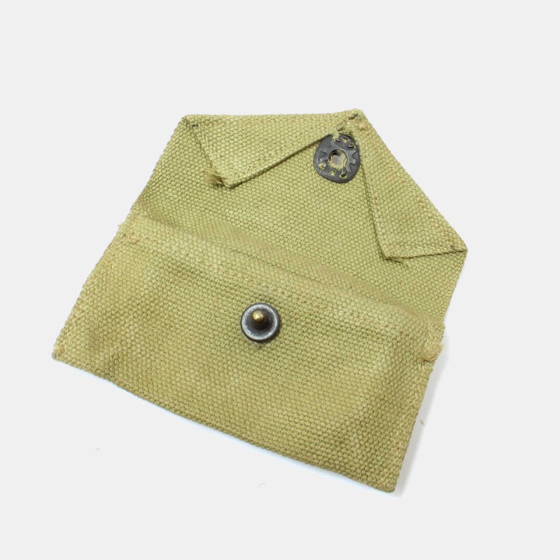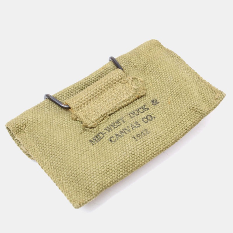 This first aid pouch is unique. It was widely distributed throughout the ranks of the US Army and carried on soldiers' belts. It contained an individual bandage, sometimes accompanied by a packet of sulfanilamide. This pouch shows signs of wear and dates from 1942.