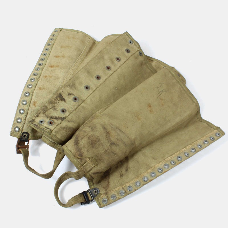 These gaiters are in field condition, still sticky from their anti-gas impregnation. Missing laces.