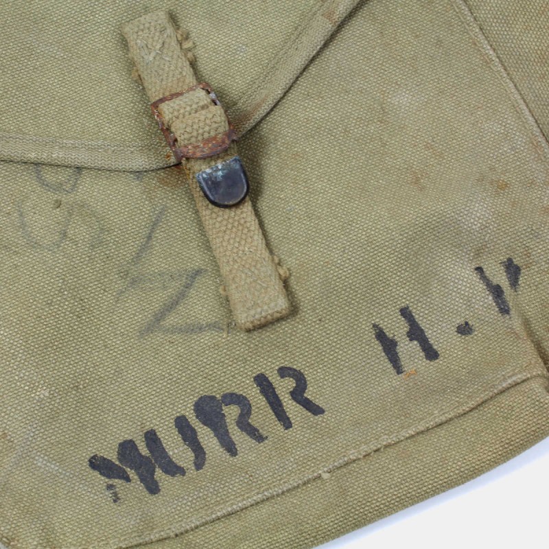 This original canvas pouch is equipped with 4 metal buckles to attach it to the M-28 knapsack. It allows to contain the bowl and US cutlery sets. Many soldiers also used it to store a number of small effects, the backpack having no other pocket. This pouch was made for the US Army and supplied to soldiers during the Second World War.