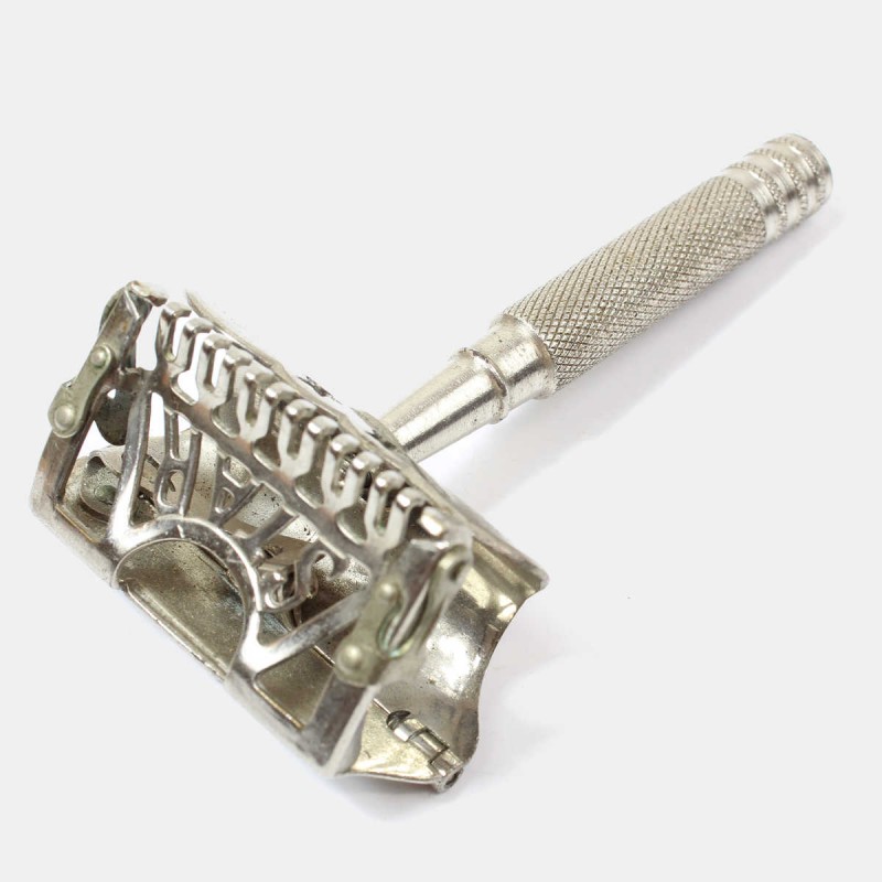 This razor is original and was issued to American troops during World War I and World War II. It is a Star brand set in good condition and would be a great addition to a display case dedicated to soldier hygiene in the field.