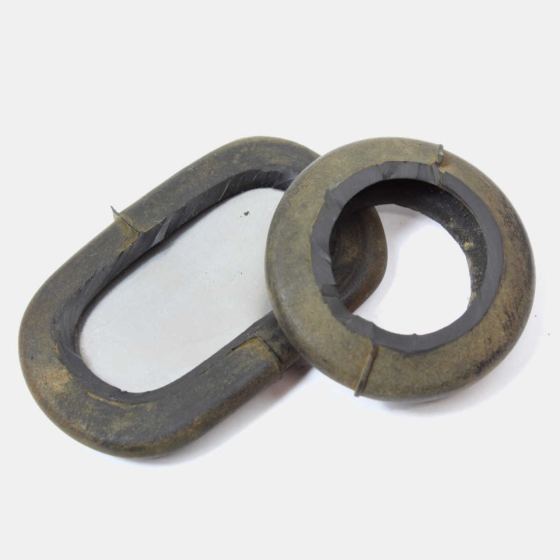 This pair of silencers is original and fits on US Army M-1940 dog tags. At that time, there were no standardized silencer models. As a result, soldiers made their own silencers to reduce the noise emitted by their tags. Among the practices observed, the most common was to cut gas mask tubes into rings, as in the set offered here. You will receive one pair, plate not included.