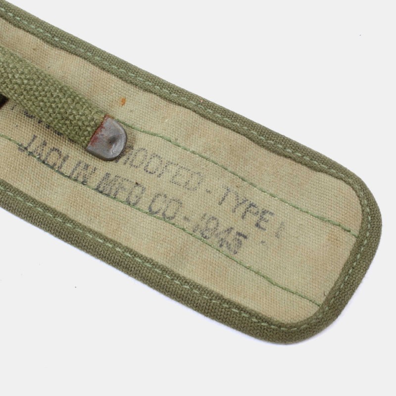 This pouch was provided to the US Army during World War II. The canvas pouch can be hung on the soldier's belt. It contained the kit which allows the cleaning of 30 M1 firearms (Garand, Cal.30 ...). This cover is dated 1945.