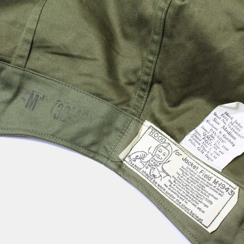 This hood is original and fits the US Army M-43 jacket. Markings are legible, size M, labels present.