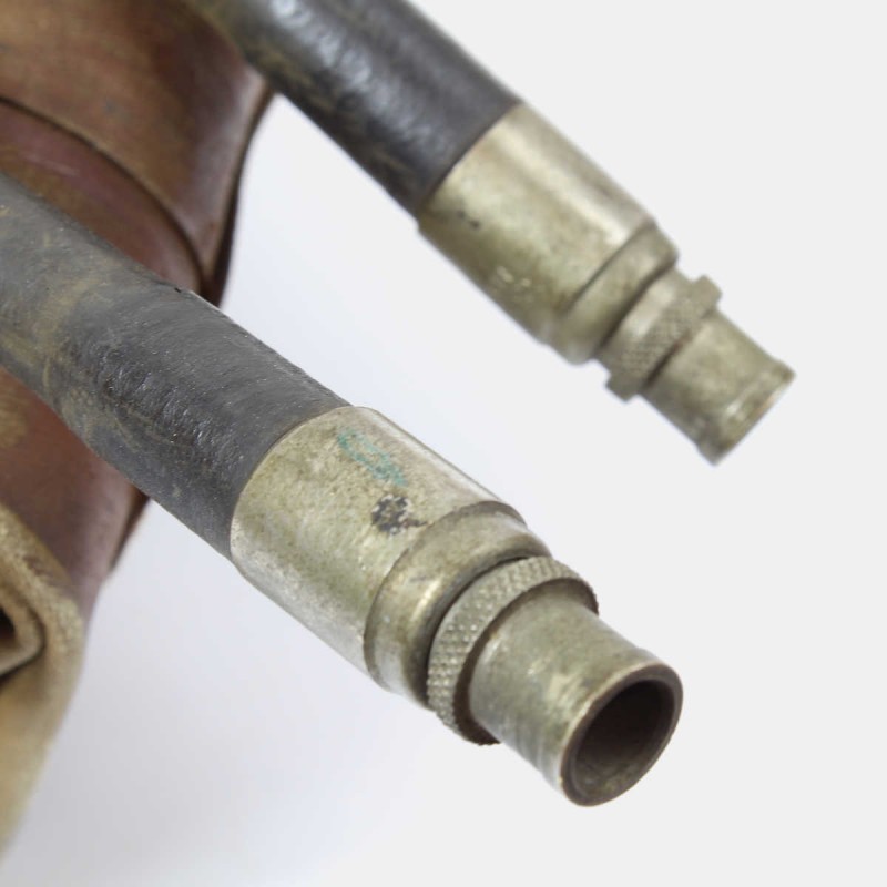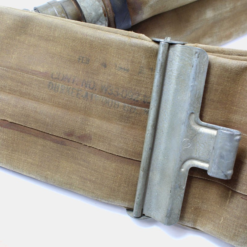 This American lifebuoy with two pressure valves is original. It was issued to US Navy personnel during World War II. It was inflated using two CO2 capsules or by mouth using two tubes. This example is in good overall condition and has all its markings. The date of manufacture is difficult to read, but it is probably February 4, 1944.
