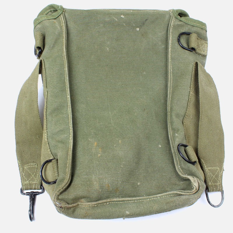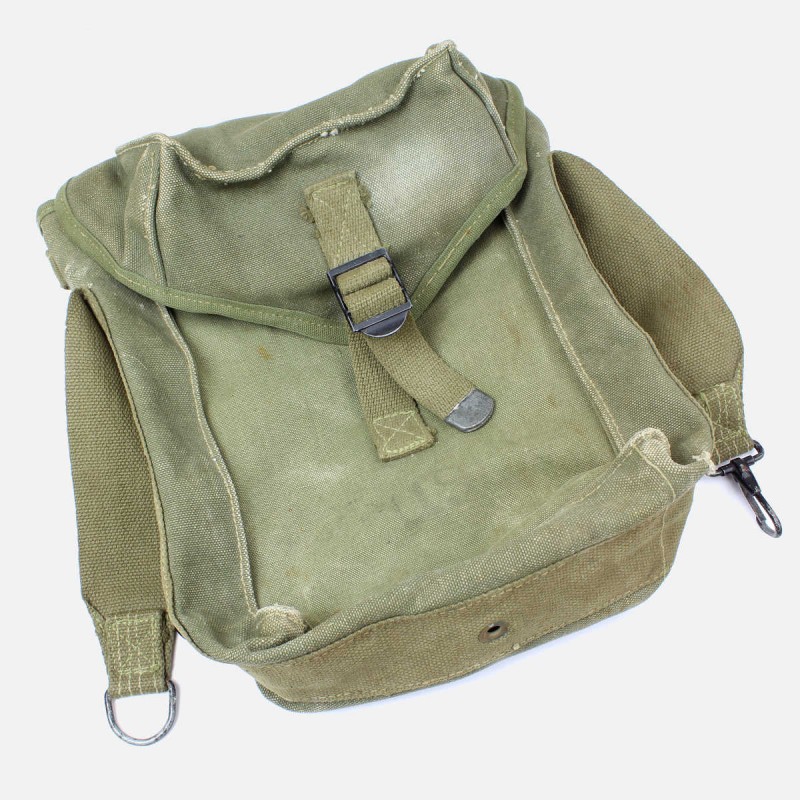The GP (General Pupose) bag allows the transport of multiple ammunition and accessories on the battlefield. It can be worn on the shoulder with a strap. This musette is dated 1945. Color OD7. Good condition.