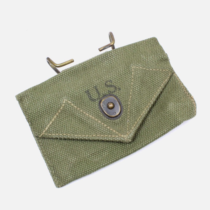 This first aid pouch is unique. It was widely distributed throughout the ranks of the US Army and carried on soldiers' belts. It contained an individual bandage, sometimes accompanied by a packet of sulfanilamide. This pouch shows signs of wear and dates from 1945.