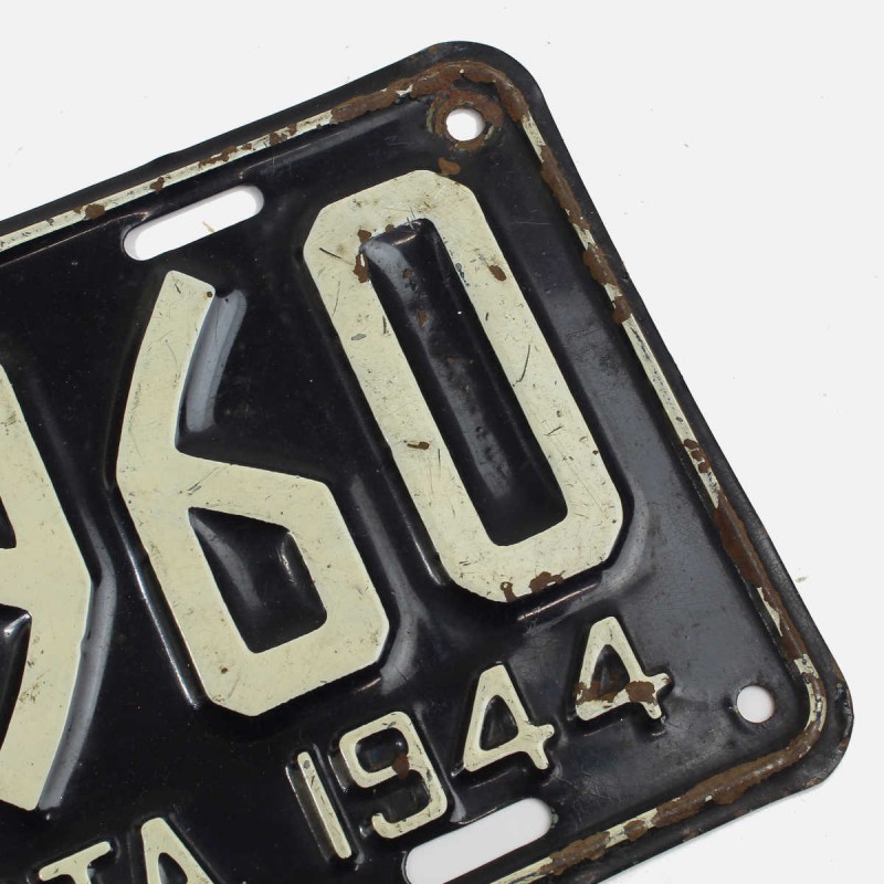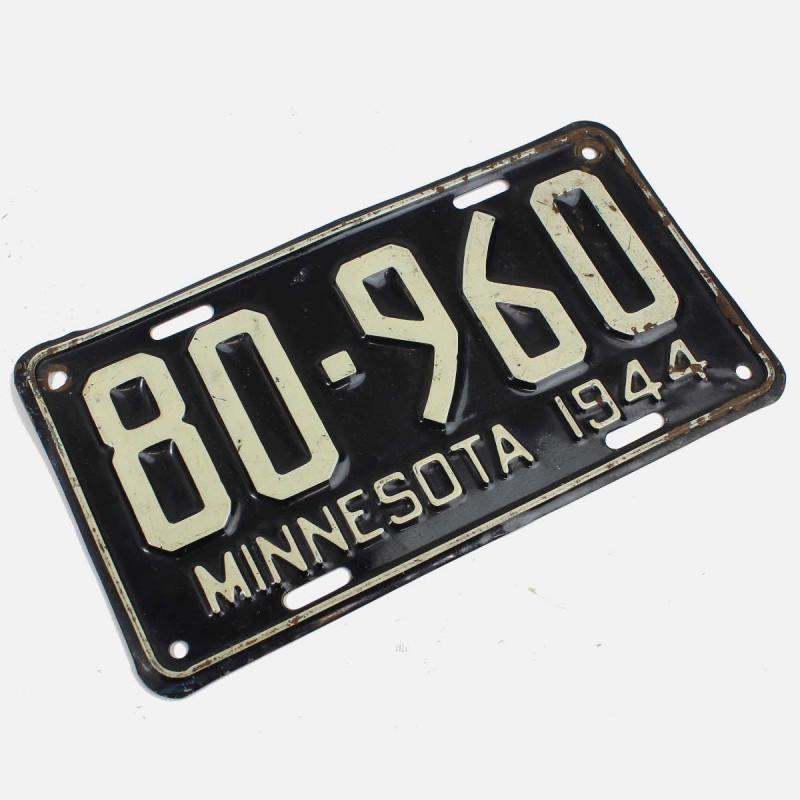 This Minnesota civilian license plate is original. It was issued to a vehicle in circulation during 1944. Good overall condition. A beautiful retro decorative item.