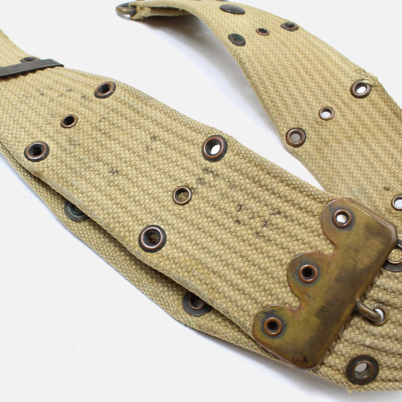 This belt is original and in good condition. This belt was provided to the American soldier during the First World War to suspend his individual equipment. This type of belt will also be redistributed with the M-1936 during the Second World War.
