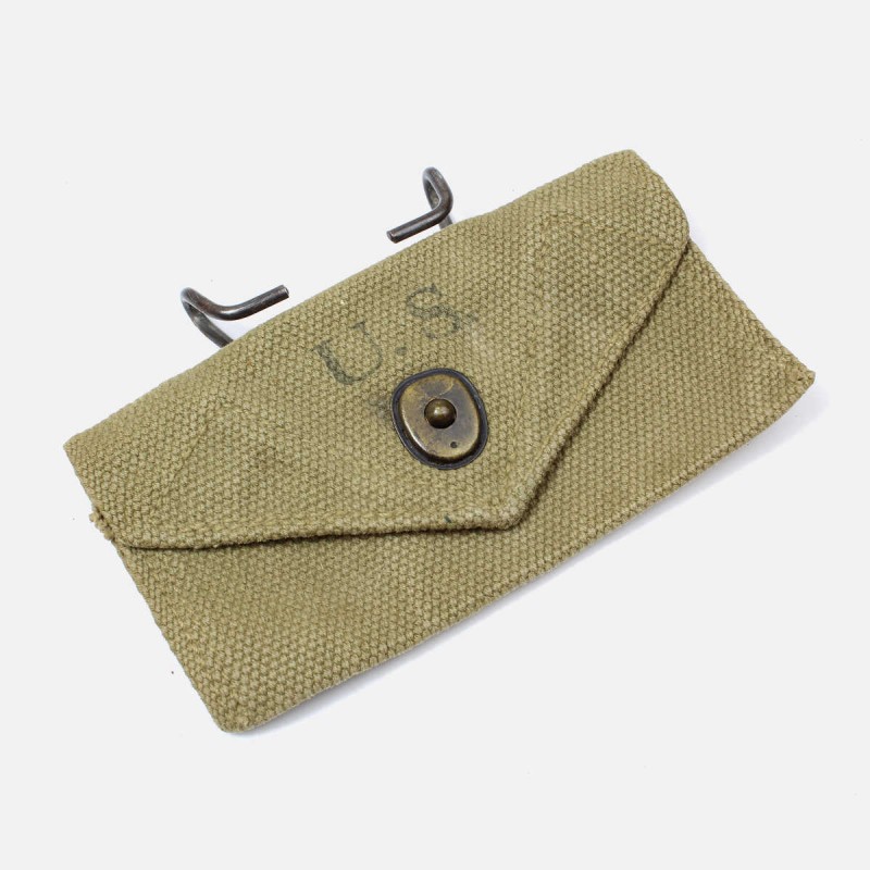This first aid pouch is unique. It was widely distributed throughout the ranks of the US Army and carried on soldiers' belts. It contained an individual bandage, sometimes accompanied by a packet of sulfanilamide. This pouch shows signs of wear and dates from 1942.