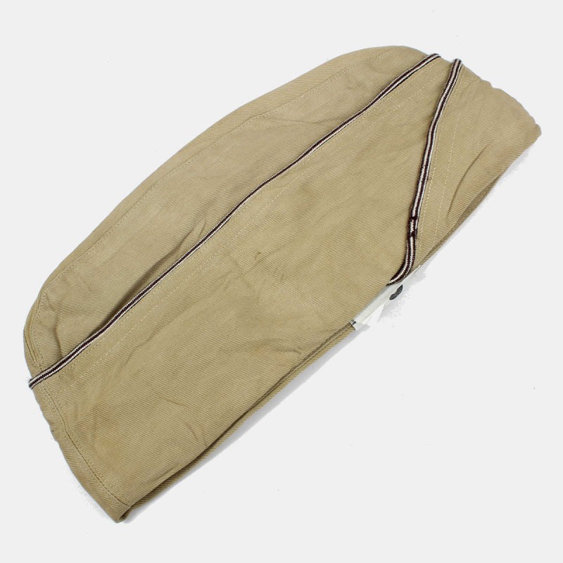This original cap is made of chino cloth (beige). It was issued during World War II to American soldiers and the piping identifies it as having been issued to a man assigned to the Medical Corps. Size 54 approximately.