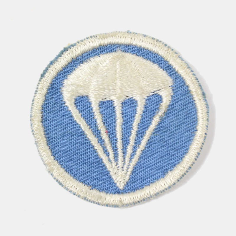 This badge is original. It was worn on the cap of paratroopers. First model, Infantry version on blue background. Twill made.