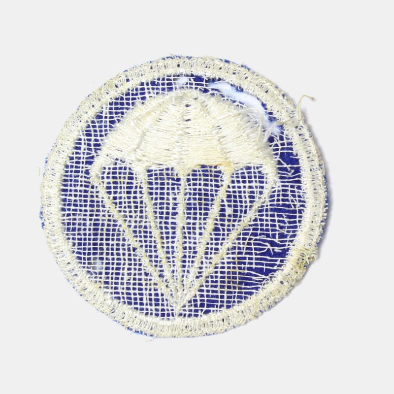 This badge is original. It was worn on the cap of paratroopers. First model, Infantry version on blue background. Twill made.
