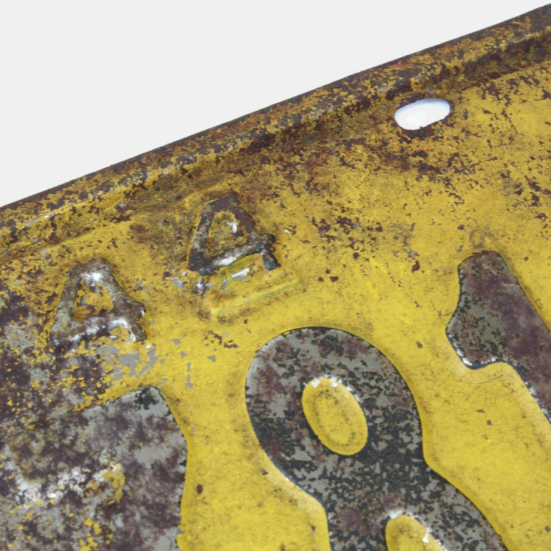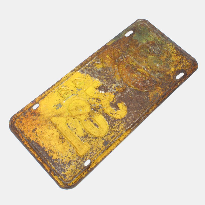 This civilian license plate from the state of New York is original. It was issued to a vehicle in circulation in 1942, then reissued in 1944. Signs of wear. A beautiful retro decorative item.
