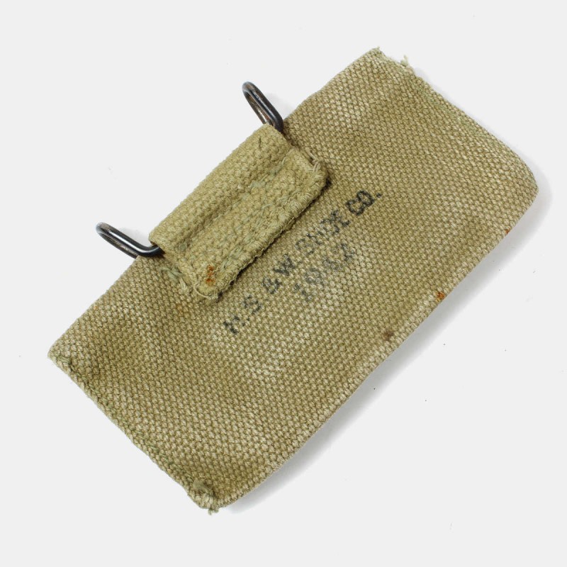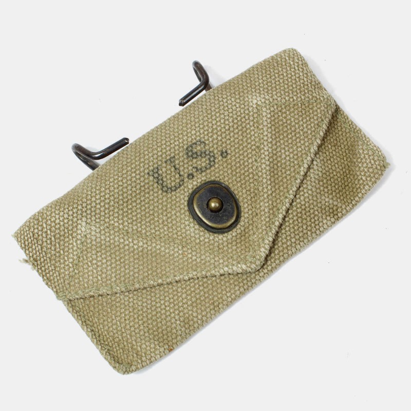 This first aid pouch is unique. It was widely distributed throughout the ranks of the US Army and carried on soldiers' belts. It contained an individual bandage, sometimes accompanied by a packet of sulfanilamide. This pouch shows signs of wear and dates from 1942.