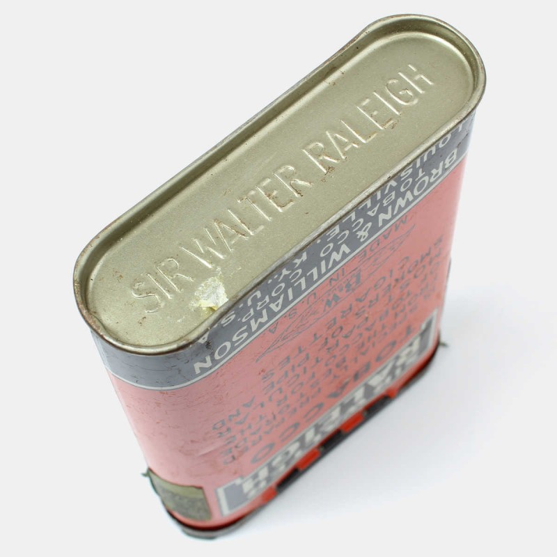 Désormais vide, elle contenait du tabac et était distribuée aux soldats américains. Le couvercle est présent et l'ensemble est en bon état.