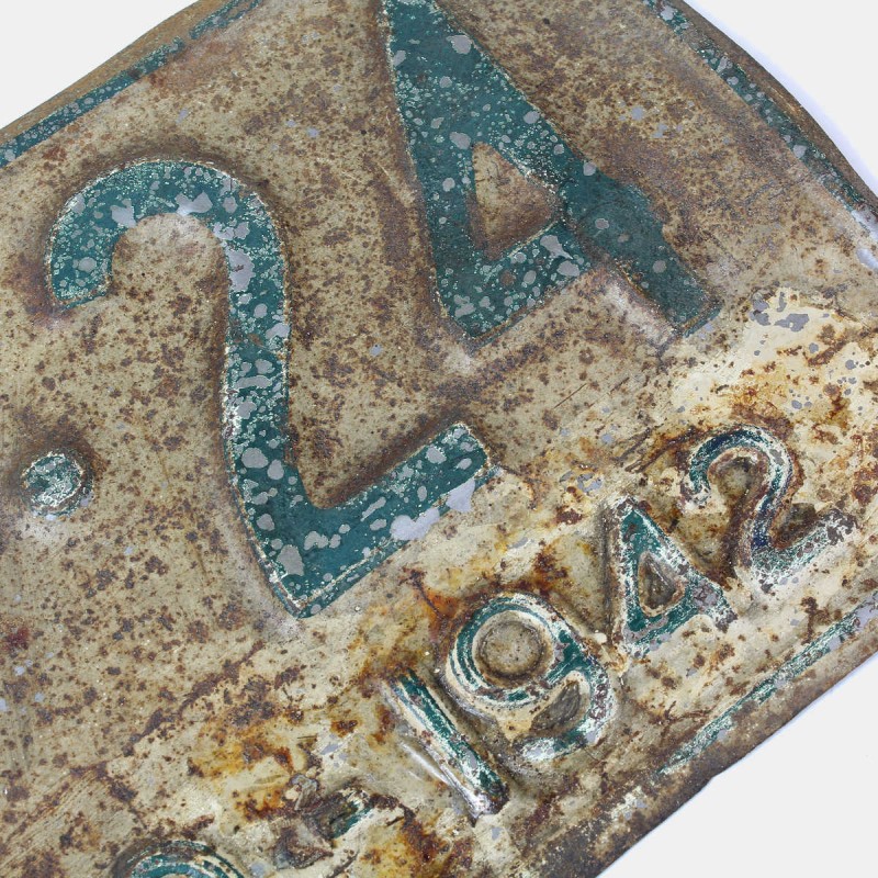 Cette plaque d'immatriculation civile de l'état de l'Ohio est originale. Elle a été attribuée à un véhicule en circulation durant l'année 1942. Bon état général. Bel objet de décoration rétro.