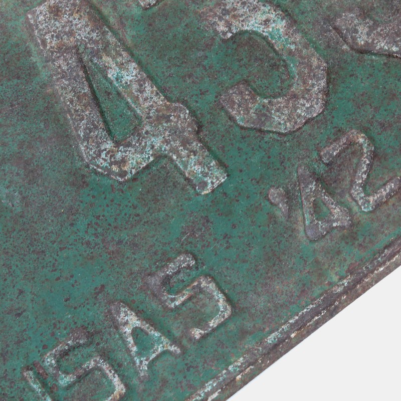 Cette plaque d'immatriculation civile de l'état du Kansas est originale. Elle a été attribuée à un véhicule en circulation durant l'année 1942. Des signes d'usure. Bel objet de décoration rétro.