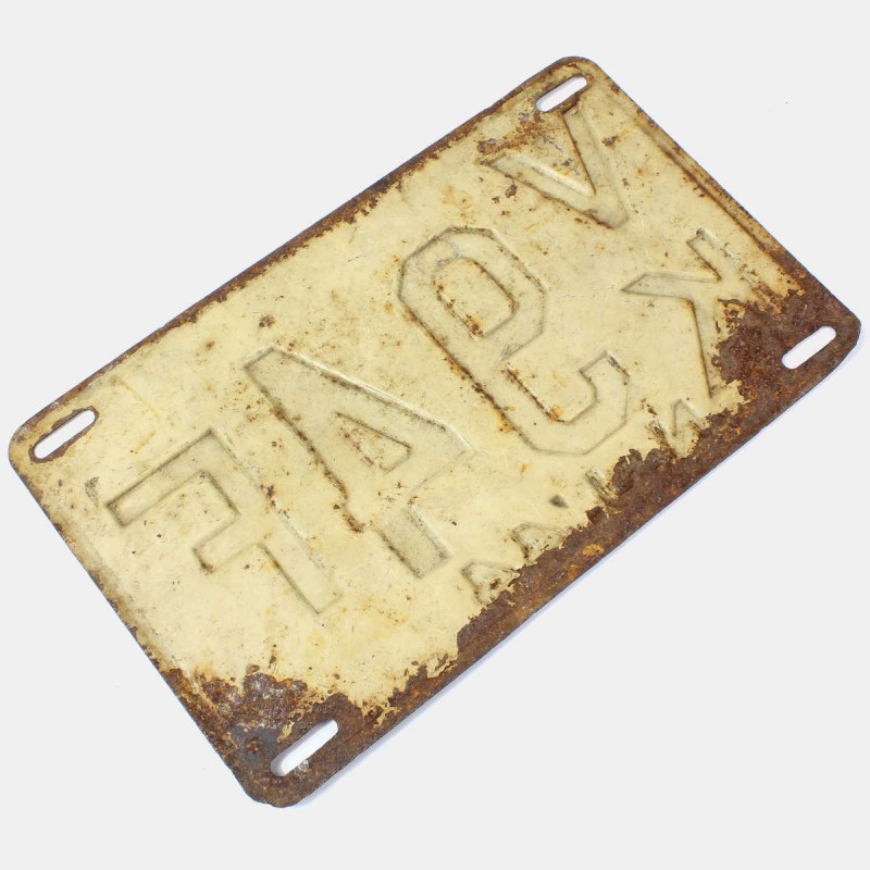 Cette plaque d'immatriculation civile de l'état du New Jersey est originale. Elle a été attribuée à un véhicule en circulation durant l'année 1942. Des signes d'usure. Bel objet de décoration rétro.