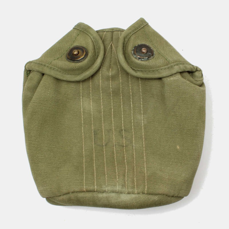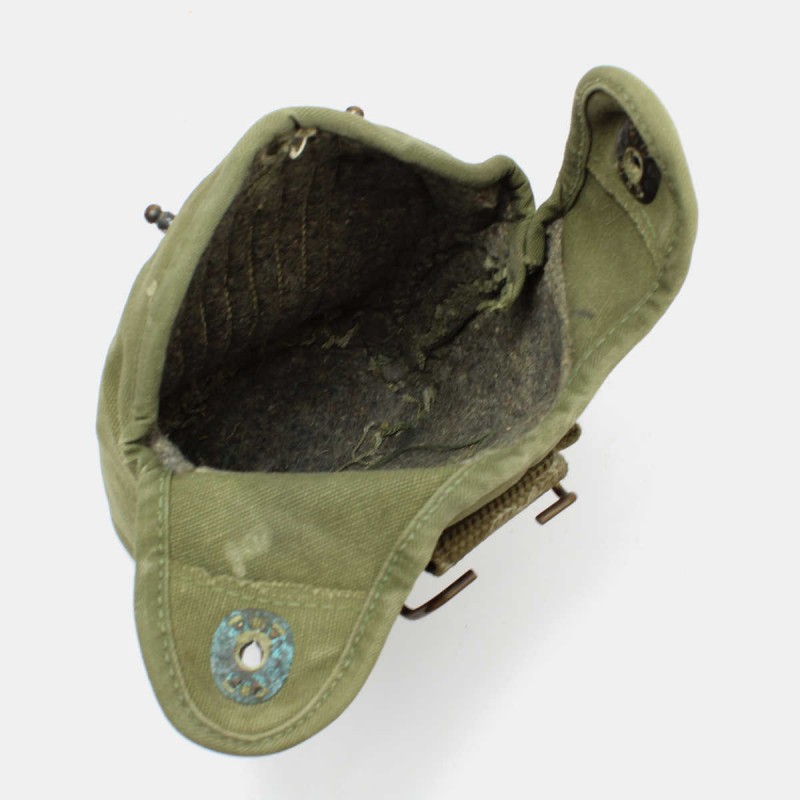 Cette housse est fournie à tous les soldats de l'armée américaine afin de ranger la gourde et le quart durant la Seconde Guerre mondiale. Cette housse originale montre des signes d'usure et les marquages sont lisibles ( fabrication de 1945).