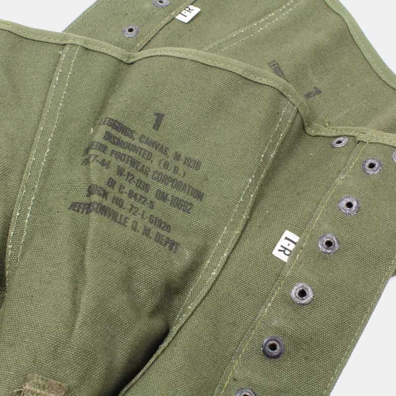 Ces guêtres sont originales, de taille 1R. Elles sont en bon état général et avec des marquages encore présents. Une fois lacées, elles permettent de ne pas abîmer les bas de pantalon mais surtout d'empêcher l'eau de s'infiltrer dans les chaussures et sous l'uniforme. Datées de 1944.