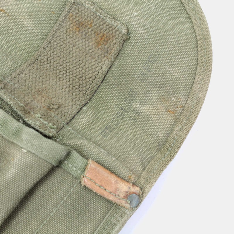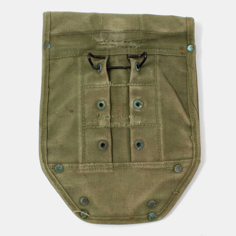 Cette housse en toile permet de transporter la pelle M-1943 souvent appelée "pelle pliante", qui contrairement à la "pelle en T" peut être utilisée comme pioche. Cet étui est muni d'un crochet, du second type réglable, permettant de maintenir la pelle sur le ceinturon ou sur le Havresac M-1928 à l'endroit prévu à cet effet. La housse montre des signes d'usage et est datée de 1944.
