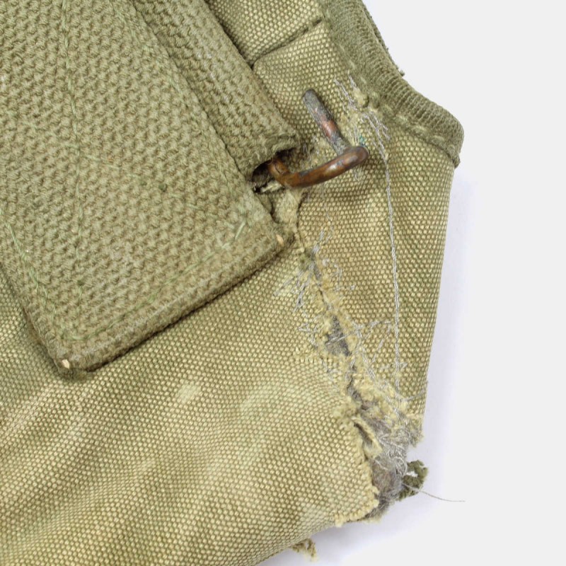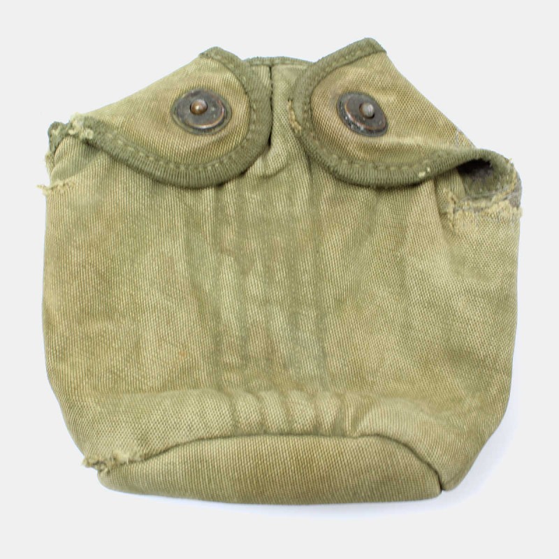 Cette housse est fournie à tous les soldats de l'armée américaine afin de ranger la gourde et le quart durant la Seconde Guerre mondiale. Cette housse originale est en mauvais état. Fabrication fin de guerre (1945 et après).