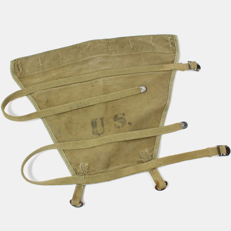 Ce pack carrier en toile vient d'adapter sur le Havresac M-28 de l'armée américaine. Il s'agit en fait d'une rallonge permettant le port de la toile, couverture etc... La sangle en cuir est manquante, état terrain.