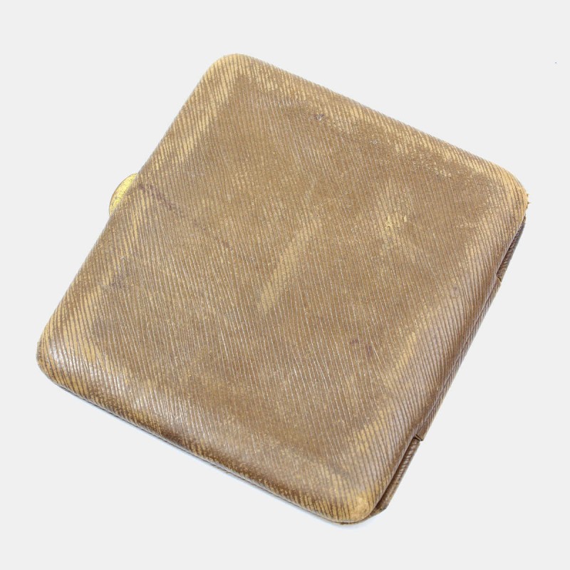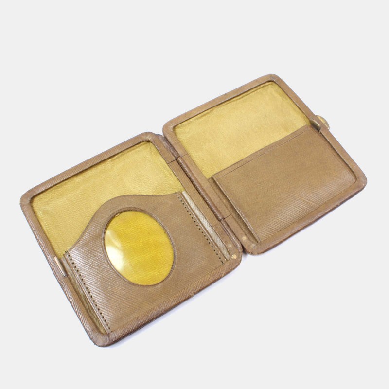 Ce petit porte monnaie est original. Confectionné en cuir et toile, son armature métallique permet de le maintenir fermé puis de l'ouvrir  à  l'aide d'un bouton poussoir. On peut également y ranger des photos. 85x90mm.