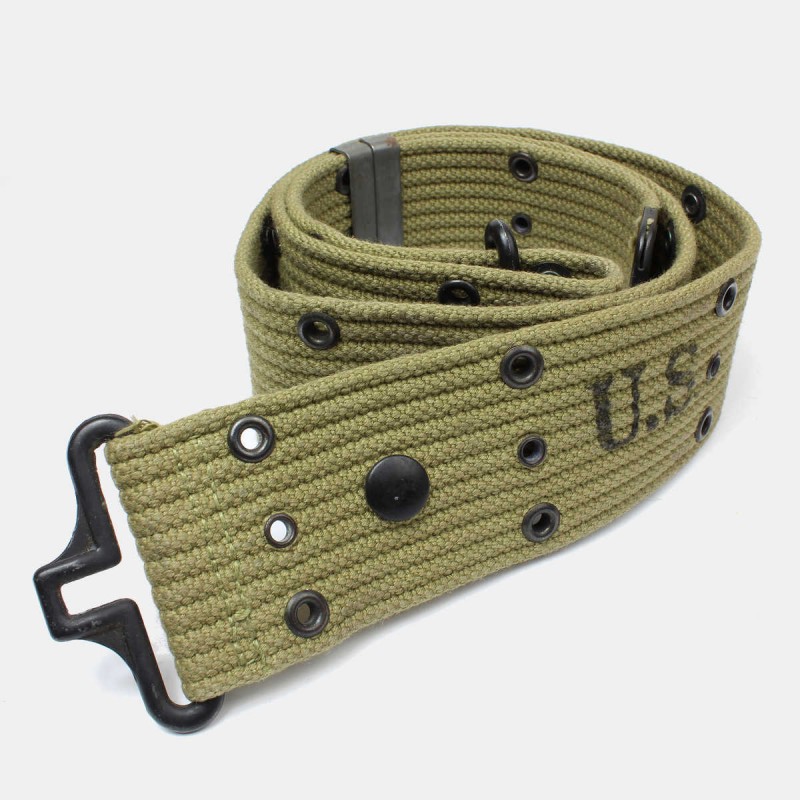 Ce ceinturon M36 est original, fourni durant la Seconde Guerre mondiale au soldat de l'armée américaine afin de fixer sur lui tout son équipement. Les oeillets peuvent recevoir ainsi tous les types d'accessoires (pelle, musette, sac, brelage, porte-chargeurs, ...). Ce ceinturon est en très bon état général et daté de 1942.
