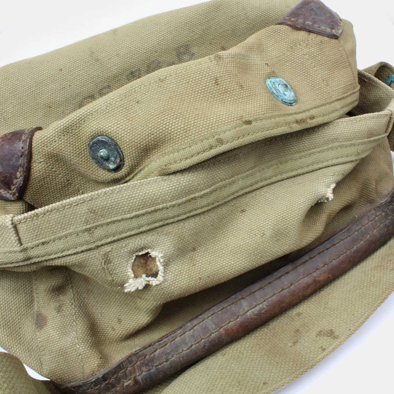 Cette sacoche CS-76 est originale et fournie aux soldats de l'armée américaine durant la Seconde Guerre mondiale. Elle contenait un télégraphe du Signal Corps. Cette sacoche est en mauvais état, provenance terrain, pressions arrachées.