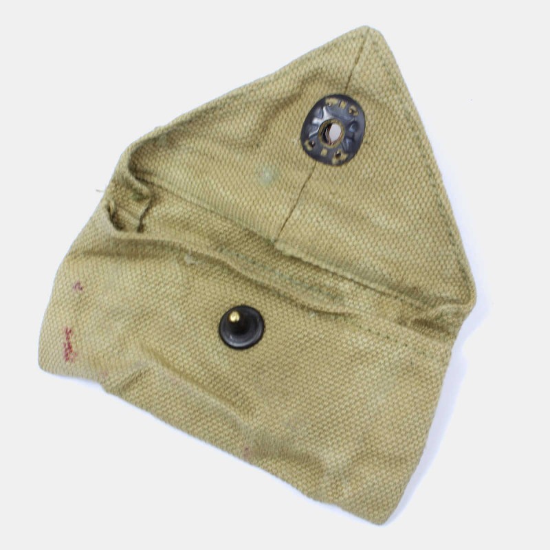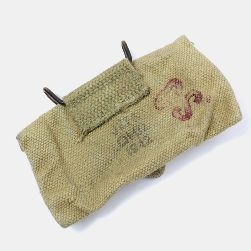 Cette pochette de premiers secours est originale. Elle fut largement distribuée dans tous les rangs de l'armée américaine et portée au ceinturon par les soldats. Elle contenait le bandage individuel, parfois accompagné d'un sachet de sulfanilamide.