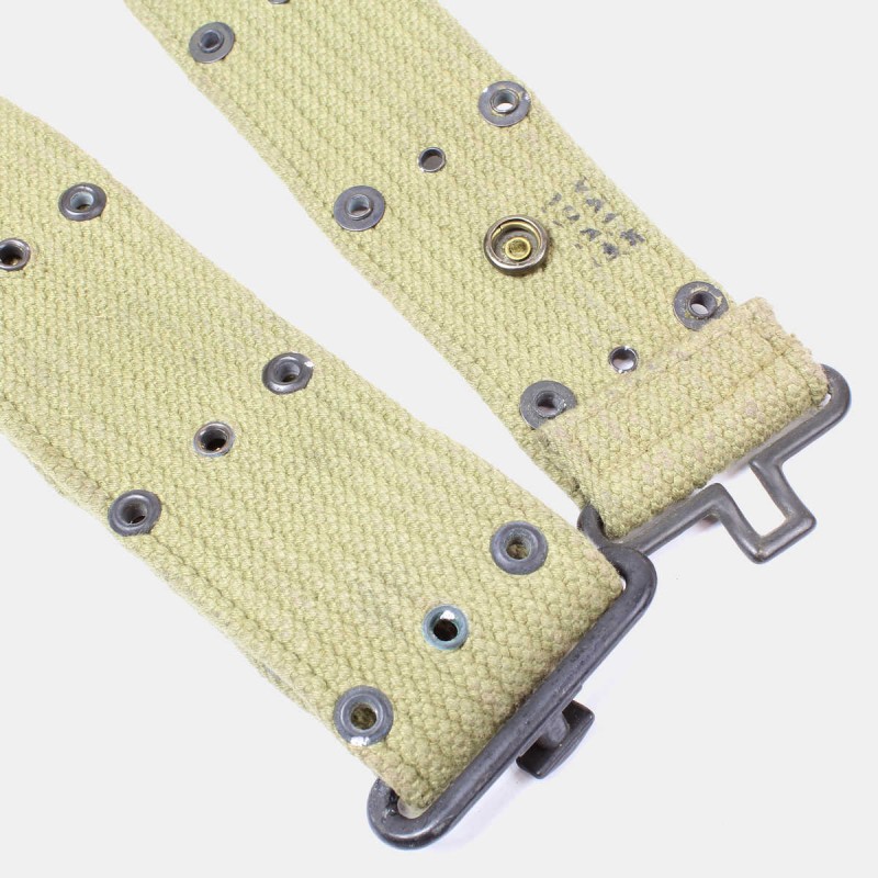 Ce ceinturon M36 est original, fourni durant la Seconde Guerre mondiale au soldat de l'armée américaine afin de fixer sur lui tout son équipement. Les oeillets peuvent recevoir ainsi tous les types d'accessoires (pelle, musette, sac, brelage, porte-chargeurs, ...). Ce ceinturon est en très bon état général et daté de 1942.