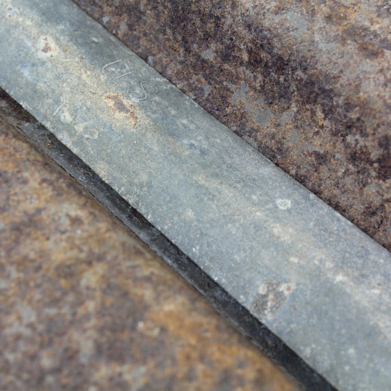 Cette gamelle se constitue de deux parties. On y trouve un fond puis un couvercle muni d'un manche pliant pour refermer et fixer l'ensemble. Ce type de gamelle est distribué à tous les soldats de l'armée américaine durant la Seconde Guerre mondiale. Elle vient se loger dans la musette ou dans la pochette à gamelle du Havresac disponibles ici. La gamelle est datée sur le manche 1942. Modèle précoce en fer étamé, provenance terrain.