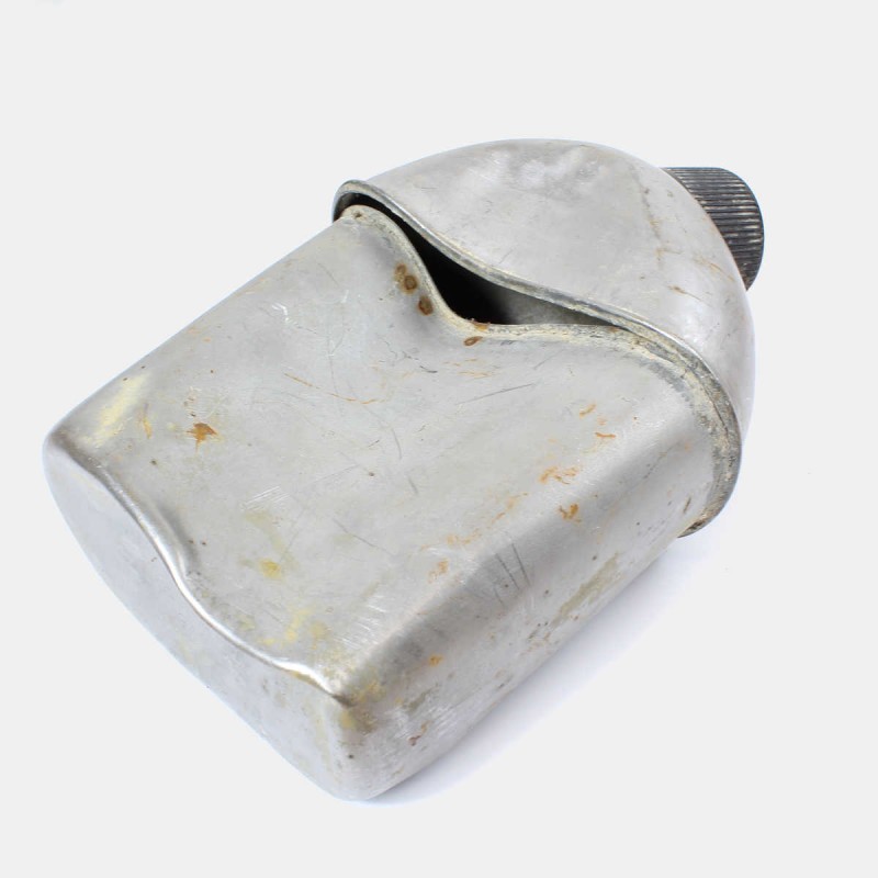 Cette gourde est marquée "VOLLRATH 1943". Elle est portée par les soldats de l'armée américaine durant la Seconde Guerre mondiale. Pièce de terrain en mauvais état, idéale vitrine.
