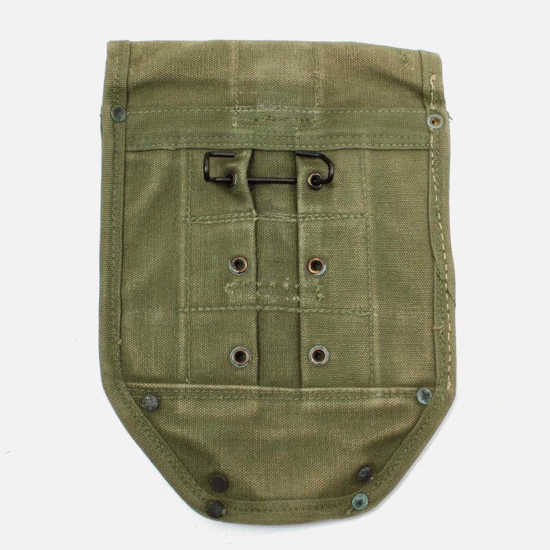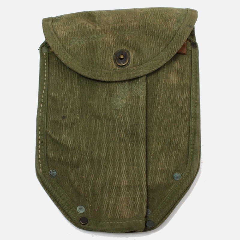 Cette housse en toile permet de transporter la pelle M-1943 souvent appelée "pelle pliante", qui contrairement à la "pelle en T" peut être utilisée comme pioche. Cet étui est muni d'un crochet, du second type réglable, permettant de maintenir la pelle sur le ceinturon ou sur le Havresac M-1928 à l'endroit prévu à cet effet. La housse montre des signes d'usage et a appartenu au soldat S.J. Stoga du 96th General Hospital.