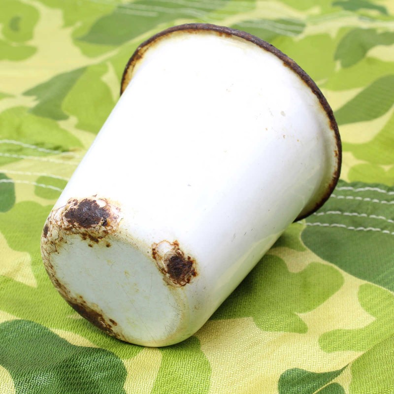 Ce gobelet émaillé est original et utilisé par le Medical Department de l'US Army durant la Seconde Guerre mondiale sur les hôpitaux de campagne etc. Il présente des éclats et signes d'usure.