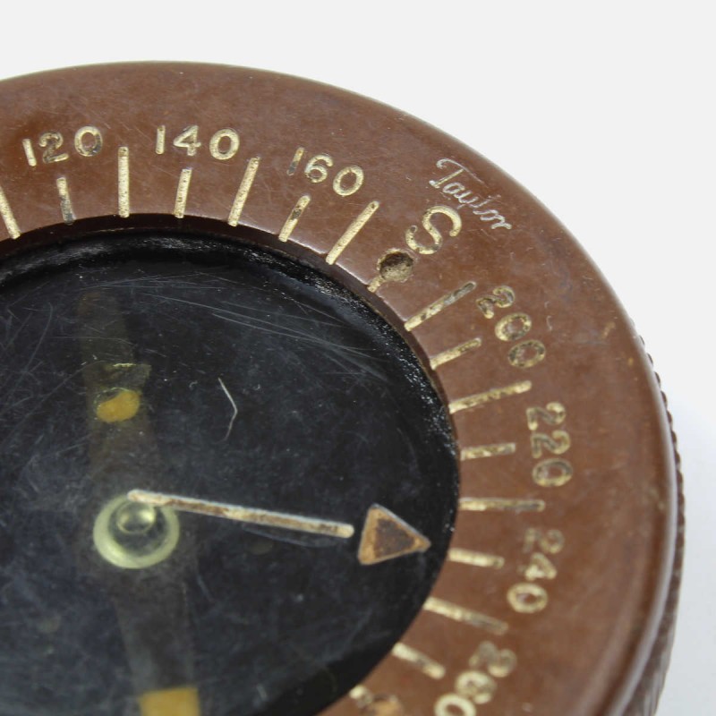 Son surnom "Taylor" vient de la firme la fabricant : TAYLOR (Rochester, N.Y.). Cette boussole montre des signes d'usage. Le bracelet est cependant manquant.