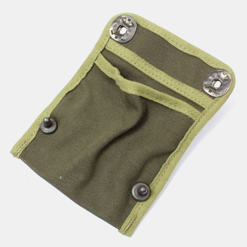 Cette reproduction de pochette en toile verte permet de ranger la boussole de marche principalement adoptée par les officiers de l'armée américaine. Le crochet en métal cousu en son revers permet de la porter sur le ceinturon M-1936. La boussole est également disponible dans votre boutique.