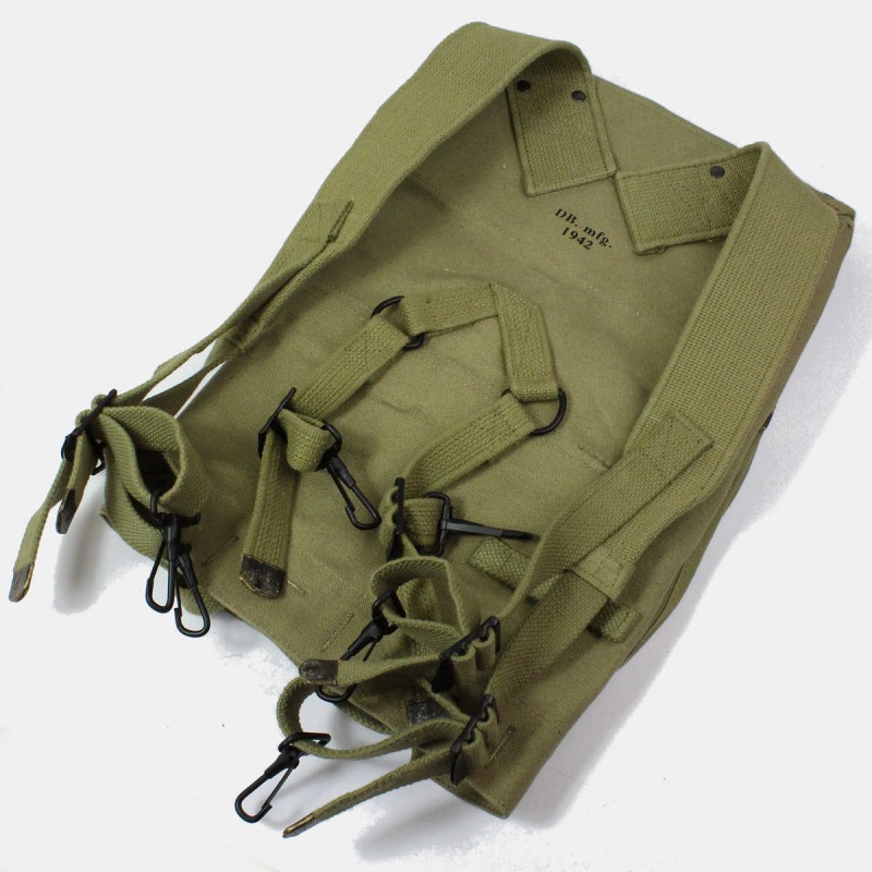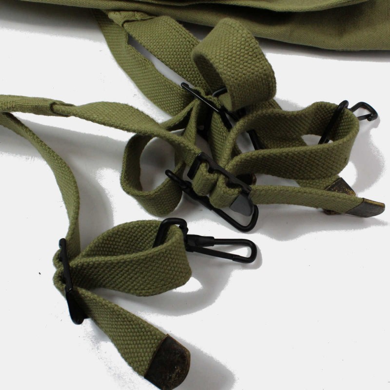 Ce sac à dos du modèle M-1928 ( Haversack ou Havresac) est l'évolution du modèle M-1910 utilisé durant la Première Guerre mondiale. Celui-ci est doté de deux petites sangles à l'arrière. Toutes les sangles sont munies de crochets permettant de le fixer sur le ceinturon et ainsi transporter les effets du soldat sur le front. La pochette à gamelle est fournie avec le sac. Les deux oeillets en métal apposés sur le rabat viennent recevoir la baïonnette tandis que ceux positionnés sur la pièce de toile web rapportée reçoivent la pelle (M-1910 ou M-1943 pliante). Ce sac est un accessoire indispensable du fantassin américain de la Seconde Guerre mondiale. Existe en version "éco".